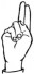 На ћирилици написано АНДРИЈАНА ГАРОЊА састоји се из 15 слова [?]. Исписано ћириличном једноручном азбуком за глувонеме:
